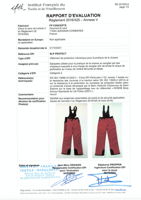 Suite à ces essais, c’est l’IFTH de Lyon qui a pris le relais et après plusieurs examens nous avons obtenu la certification UE.